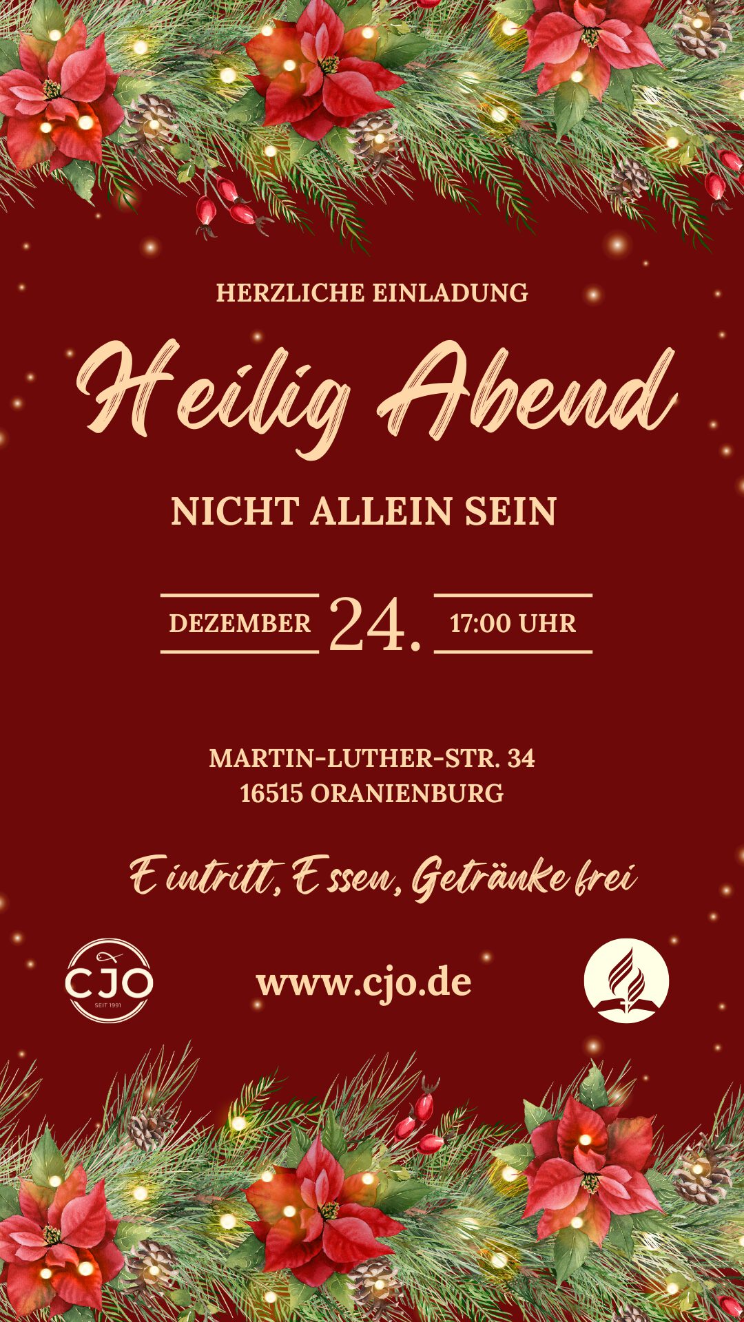 Endlich ist Weihnachten, das Fest der Freude und der Familie. Wer den Heiligen Abend nicht allein verbringen möchte, ist auch in diesem Jahr herzlich zu unserer Weihnachtsfeier am Heiligen Abend eingeladen. Wir beginnen mit einer besinnlichen Weihnachtsandacht und einem Theaterstück der Kinder und Jugendlichen, die unsere Angebote besuchen. Anschließend feiern wir gemeinsam in gemütlicher Atmosphäre bei leckerem Essen und Getränken. Ob alleinstehend, ohne Freunde und Verwandte, ob alleinerziehend mit Kind oder einfach nur keine Lust auf den üblichen Weihnachtsstreit – jeder ist willkommen, denn niemand soll am Heiligen Abend allein sein müssen.