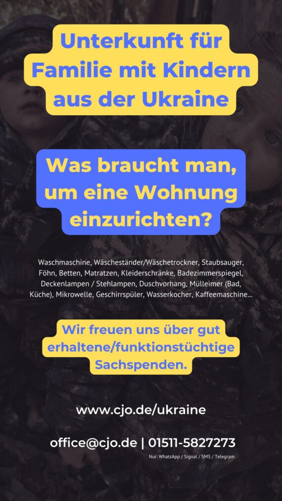 Die Situation in der Ukraine lässt niemanden unberührt. Wir beten und wir helfen praktisch. Hilfe in der Ukraine Als CJO e.V. unterstützen die Kinder- und Jugendarbeit des Teams von Straßenkinder e.V. aus Berlin, die ca. 4h südöstlich von Kiew in der Stadt Znamianka ein Jugendzentrum betreiben, das seit Ende Februar […]