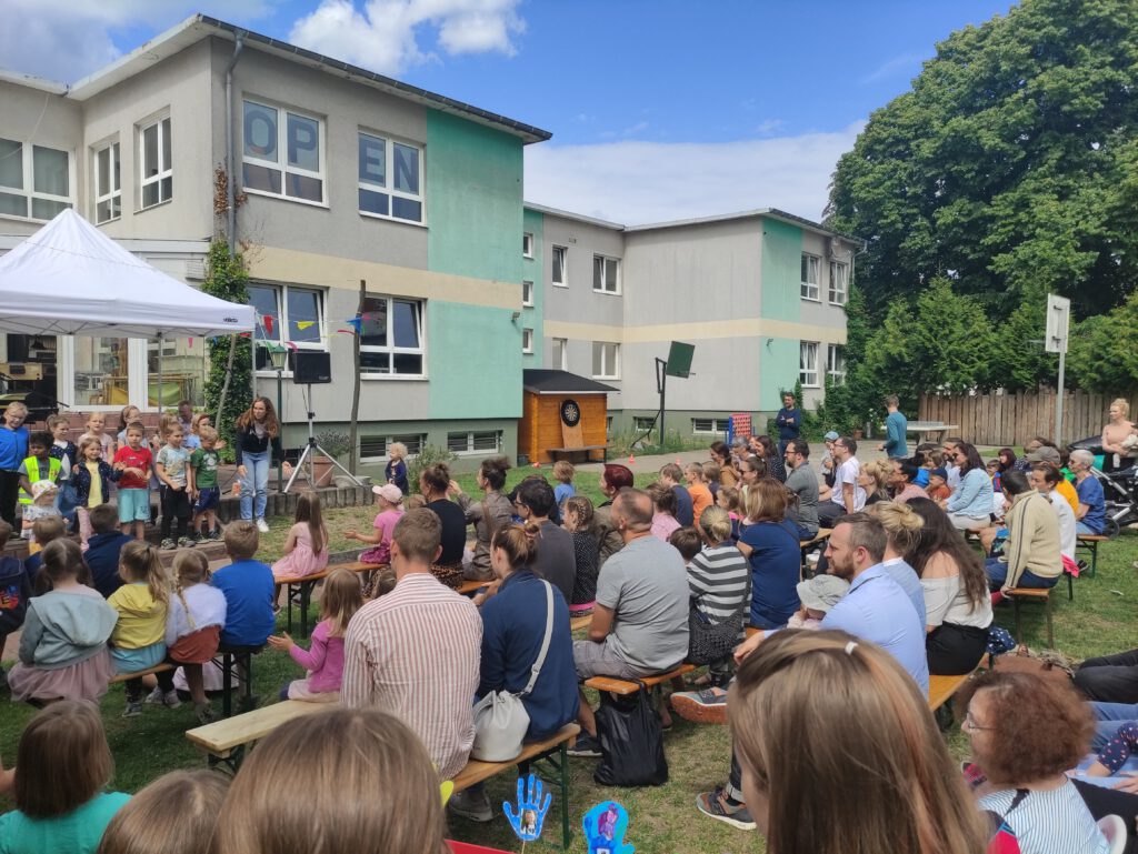 Die Sozialdezernentin der Stadt Oranienburg, Frau Rose, würdigte anschließend in einem Grußwort die Bemühungen der Mitarbeiter der Christlichen Kita Leuchtturm, die Arbeit durch überprüfbare Qualitätsstandards und entsprechender Zertifizierung zu verbessern. Dies sei bei „freien Trägern“ in Oranienburg beispielhaft. Nach vielen guten Segenswünschen und der Verabschiedung der Schulstarter wurde dann auf dem Gelände des CJO und der Kita zünftig gefeiert. Auf die Kinder warteten Hüpfburgen und Spielstationen während die Eltern sich bei Kuchen und Kaffee treffen konnten. Die knapp 200 Kinder und Eltern haben diesen wertvollen Tag genossen und auch die Mitarbeiter des CJO e.V. blicken zufrieden und dankbar auf ein gelungenes Fest zurück.