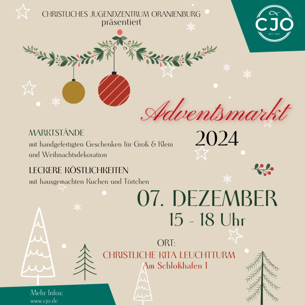 Unser Adventsmarkt ist mittlerweile eine schöne Tradition und nach Corona und einem „Draußen-Experiment“, sind wir wieder in der Kita Leuchtturm – drinnen und draußen. Es gibt Waffeln, Punsch und Grillwurst vor der Kita. Drinnen lockt das AdventsCafé mit leckeren Kuchen, Torten und anderen Köstlichkeiten. Marktstände mit liebevoll und kreativ gestalteten kleinen Geschenken: genäht, gebastelt, gewerkelt, gekocht, gebacken – hier findet jeder noch das ein oder andere Geschenk oder etwas für sich selbst. Dazu gemütliche Atmosphäre mit Live-Musik, Angebote für Kinder wie Weihnachtskino, Kinderschminken und Basteln.