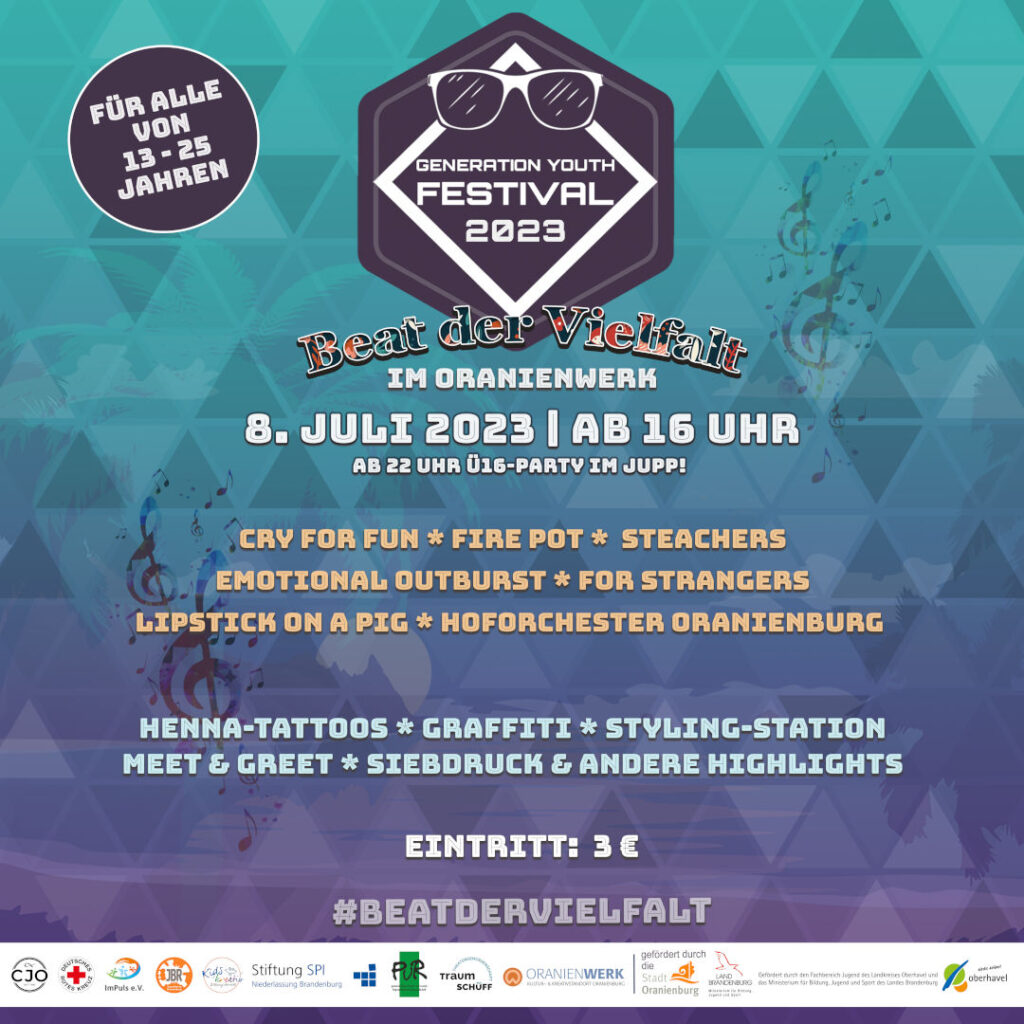 Am Samstag den 8. Juli es soweit, das jährliche Generation Youth Festival startet. Wie in den vergangenen Jahren sind wir als CJO auf diesem wilden und sehr bunten Festival mit dabei. Wir erwarten ca. 200-300 Jugendliche und bereichern die Angebote mit einer Loop-Station (das ist was mit Musik, musst du googeln!) und haben das beliebte Bogenschießen im Gepäck. Außerdem verkaufen wir an unserem tollen Stand Snacks und Eis.